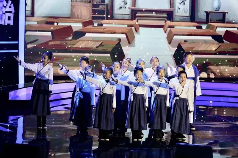 ▲闵行区积极开展传统文化教育活动。图为莘光学校在区经典吟诵优秀节目展演中带来名为《苔》的节目。(受访者供图)