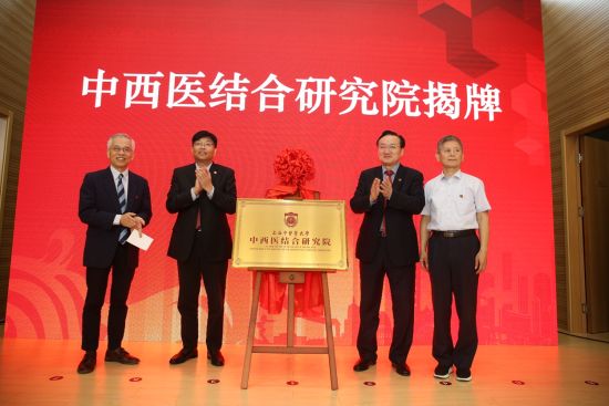 上海市卫生健康委员会副主任、上海市中医药管理局副局长张怀琼,上海市中西医结合学会会长、海军军医大学长海医院教授凌昌全,bat365中文官方网站党委书记曹锡康、校长徐建光共同为中西医结合研究院揭牌。