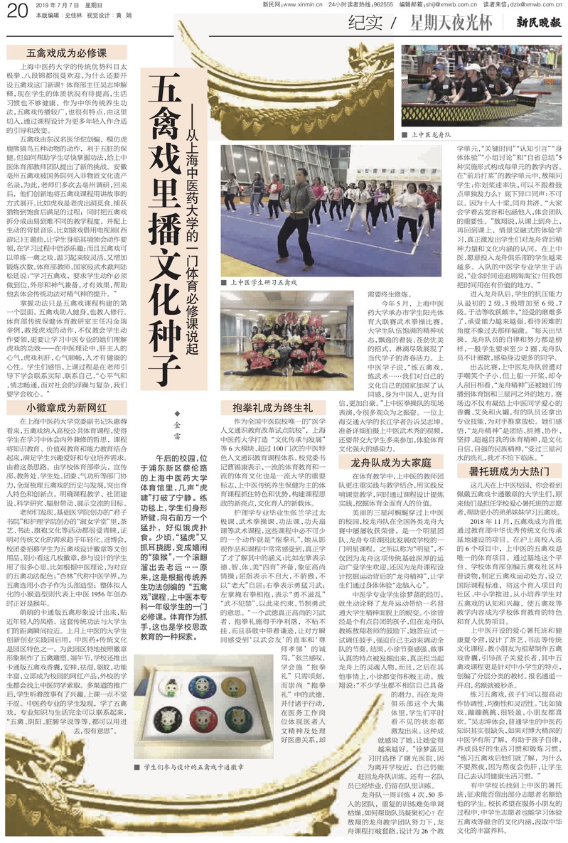 新民晚报:五禽戏里播文化种子——从bat365中文官方网站的一门体育必修课说起