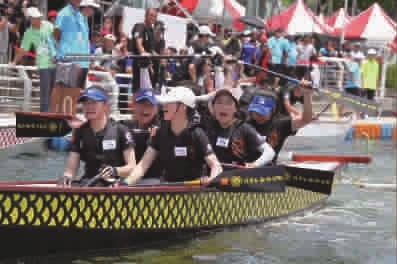 出去比赛,上中医龙舟队曾遭对手嘲笑个子小,但上船一开桨,却令人刮目相看,“龙舟精神”还被她们传播到体育馆和三星河之外的地方。赛场边不仅有凝结上中医同学爱心的香囊、艾灸和火罐,有的队员还拿出专业技能,为对手推拿放松。她们感悟,“龙舟精神”是团结、拼搏、协作、坚持、超越自我的体育精神,是文化自信、自强的民族精神,“受过三星河水的洗礼,我才不怕下临床。”