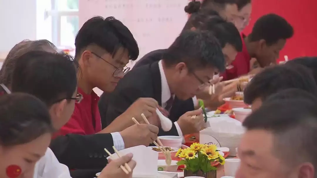 作为最擅长养生的bat365中文官方网站,一款按照中医食养理论,融入了五味中药材和五种谷物的“五谷丰登国庆面”于今天中午暖心登场。师生共享国庆喜面,齐祝国泰民安。
