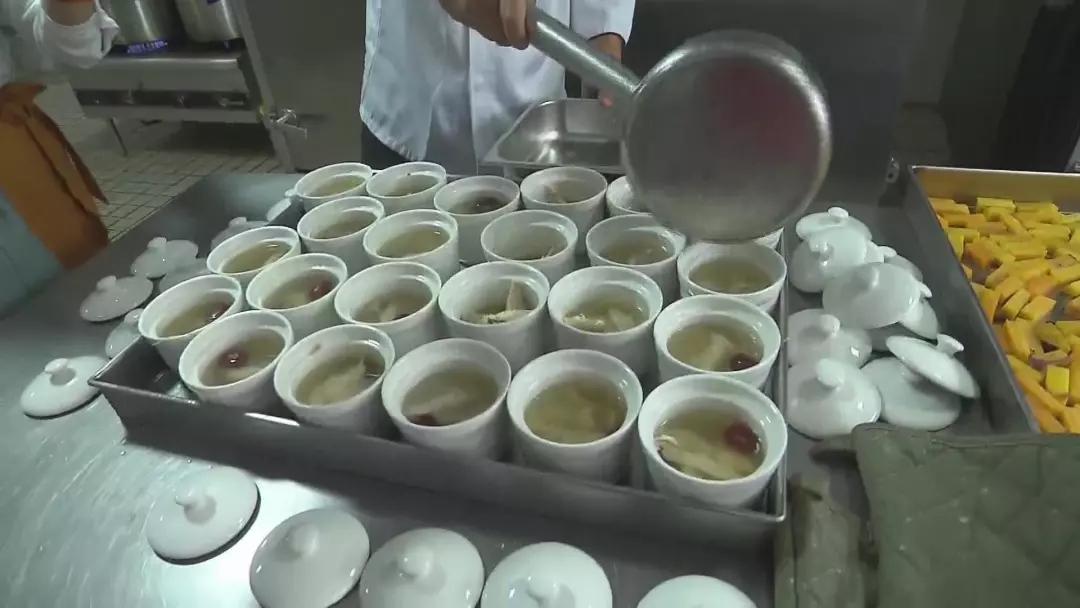 上午十点半,bat365中文官方网站食堂的大厨们里里外外早就忙碌开了。炖着的是一盅盅红枣黄芪母鸡汤,熬着的是枸杞麦冬茶。配菜是金桂龙井滑虾仁,凉菜是金针菇拌木耳,点缀两粒小豌豆俨然是一幅五行八卦图。