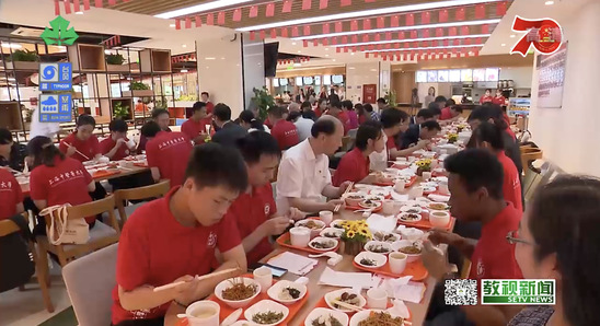 “五谷为养,五畜为益,五菜为充”,原创的庆生面将学校中医药特色发挥得淋漓尽致,看完国庆庆典,校领导、院士也来到食堂,加入到学生队伍中一起吃生日面。凑巧的是有一位学生刚好是今天生日,中国工程院院士陈凯先代表学校为他送上蛋糕和祝福。陈凯先表示,通过送蛋糕,衷心地祝愿这位学生能够跟祖国一样,不断地发展,不断地提升,不断能取得新的成就,国家的未来希望都寄托在年轻人身上,希望他们能够牢记这份使命,能够承担起这样的一个责任,为国家为社会的发展做出更大的贡献。