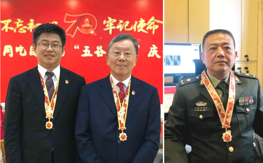 施杞与学生王拥军、彭宝淦荣获庆祝中华人民共和国成立70周年纪念章