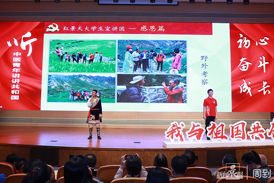 现场中医青年代表为在场观众讲述了他们心目中的共和国以及自身的成长故事。这些分享汇聚了他们的爱国之情、爱国之志,让他们在弘扬伟大民族精神的道路上,发出属于自己的年轻而又嘹亮的声音。