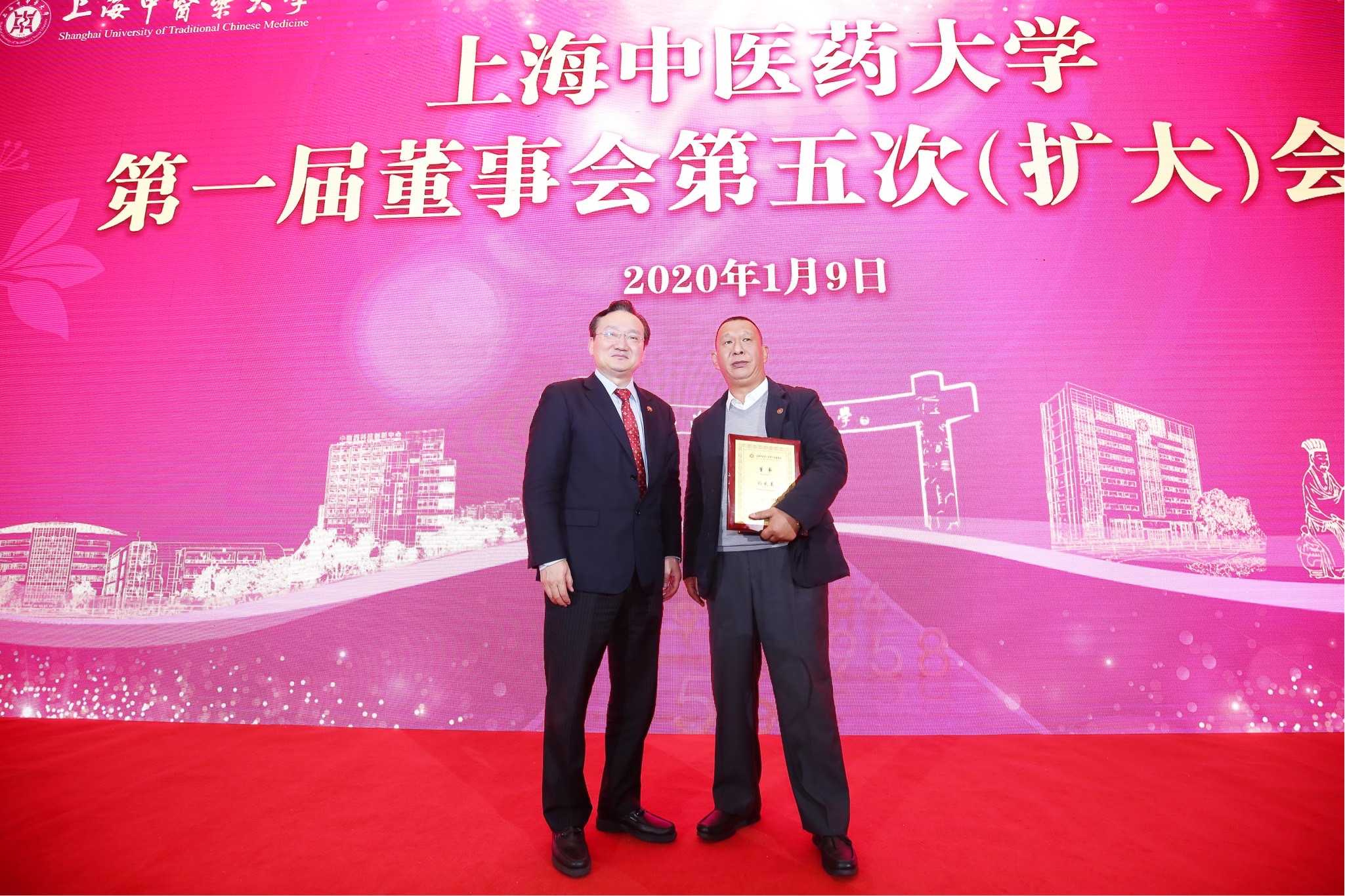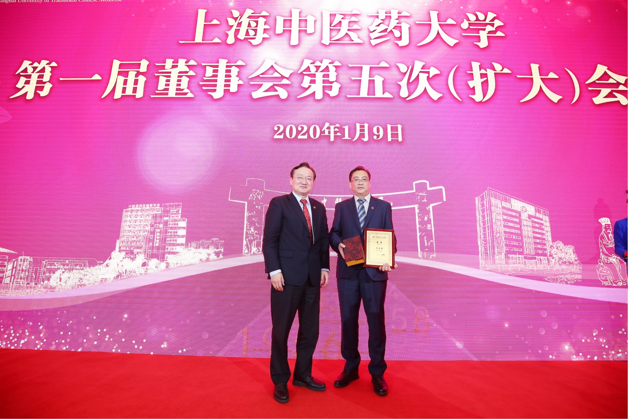 会议审议并一致同意了第一届董事会成员增补名单,兰州佛慈制药股份有限公司与吉林省磐龙玉开发有限公司成为第一届董事会新的机构董事。徐建光为兰州佛慈制药股份有限公司党委书记、董事长石爱国与吉林省磐龙玉开发有限公司董事长孙良玉颁发聘书,并为他们佩戴校徽。两位新校董分别作交流发言,介绍企业的发展情况,并表示将在董事会的领导下全力支持学校和中医药事业的发展。