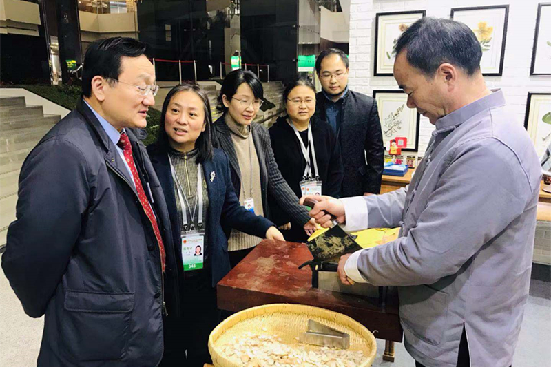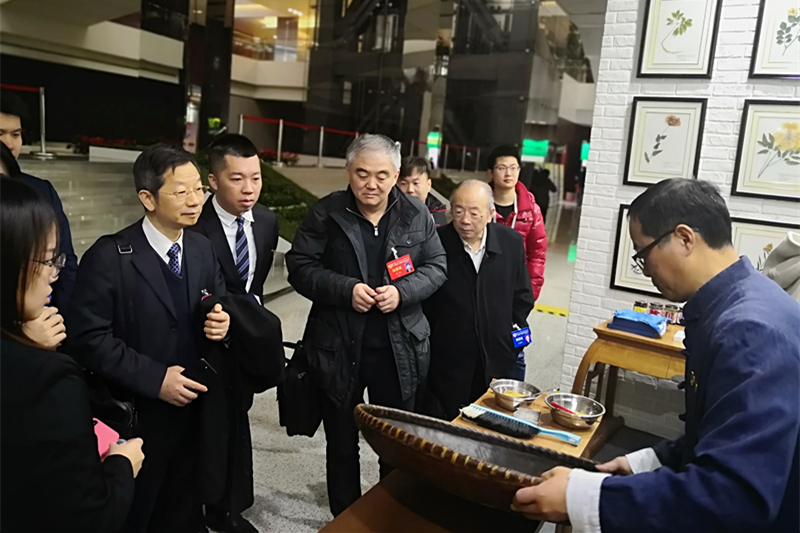 展示受到两会代表们的热烈欢迎。国家级非遗传承人张雄毅所演示的现场泛丸--六神丸制作工艺,以及苏卫明的现场传统中药切片技术精彩展示,无不体现了中医药人坚守苦修的匠心和传承精华的初心,引来代表们现场观摩后啧啧称赞。上海中医药博物馆带来的卷艾条和做香囊活动,则让代表们在争先恐后、跃跃欲试的快乐动手体验和浓浓的草药馨香中,了解和走进中医药,不知不觉成了“中医粉”。bat365官网上海中医健康服务协同创新中心最新研发的草本免洗洁手液和洎芙兰草本系列美肤产品,受到代表们高度关注和喜爱,成为会场“明星产品”,这正是中医药守正创新的生动诠释。与会的中医药界会议代表们纷纷利用午休间隙,在现场向其他代表热情讲述中医药故事,成为展区一道独特的亮丽风景。