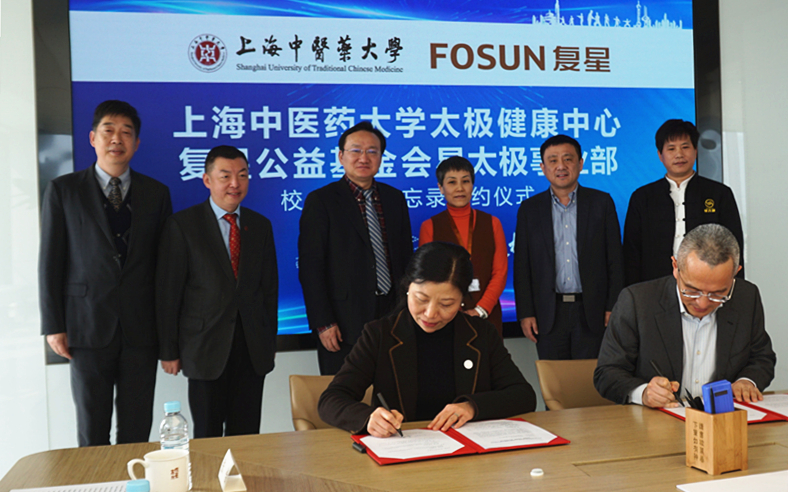 1月21日,bat365中文官方网站太极健康中心与复星公益基金会星太极事业部校企合作备忘录签约仪式在上海外滩金融中心举行。bat365官网校长、上海市中医药研究院院长徐建光,副校长胡鸿毅,复星集团监事会主席谈剑,复星国际执行董事、联席总裁陈启宇以及两家单位的相关部门负责人出席签约仪式。