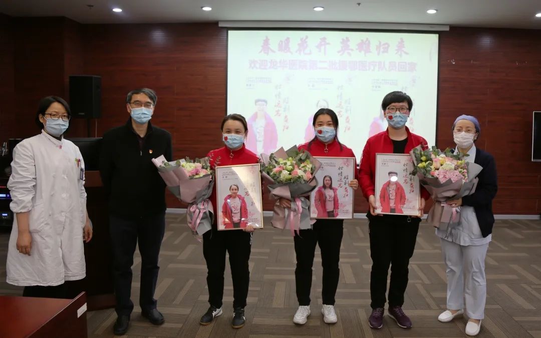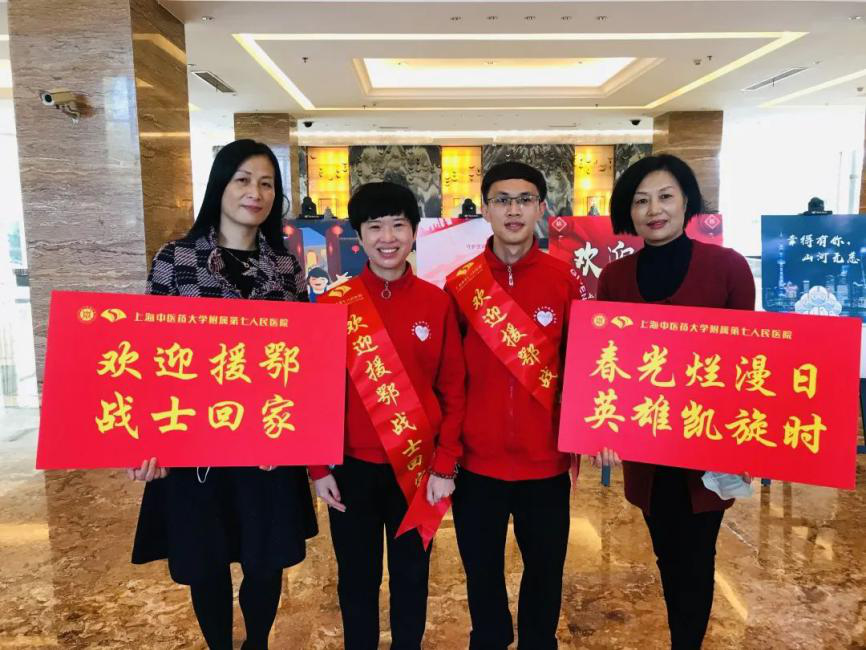 附属龙华医院援鄂队员李群、李黎梅、刘蕙宁在医院举办的欢迎仪式上,收到了院方特制的援鄂纪念相框,表示作为党员,将不忘初心,回归岗位后继续发扬援鄂精神。据悉抵沪2天后,她们又向院领导递交联名请战书,希望休整过后再赴阻击境外疫情输入的一线,直至全面赢取疫情防控最终胜利。