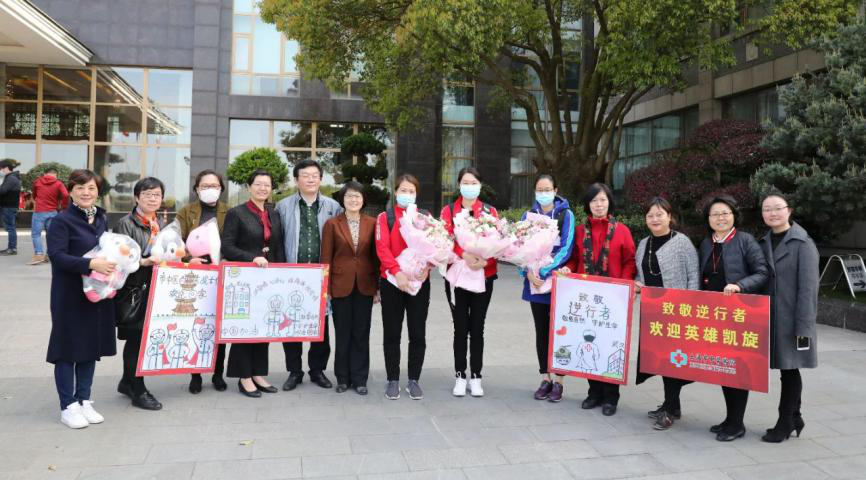 附属市中医医院援鄂队员樊洁琼、蔡俊、奚洁回家的消息一经散布,医院部分医护人员自发赶到医院迎接她们。医院党委书记徐建、院长陆嘉惠及部分职能科室负责人更是直接前往她们休整的隔离定点酒店接她们回院。