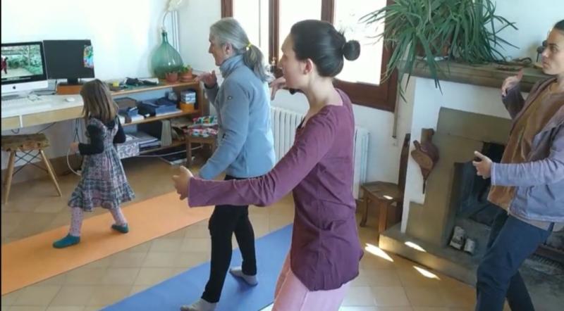 在西班牙巴塞罗那,上海气功研究所气道书院外籍学员、西班牙欧洲中医基金会学员及当地人士,祖孙三代居家习练八段锦等中华传统养生术。