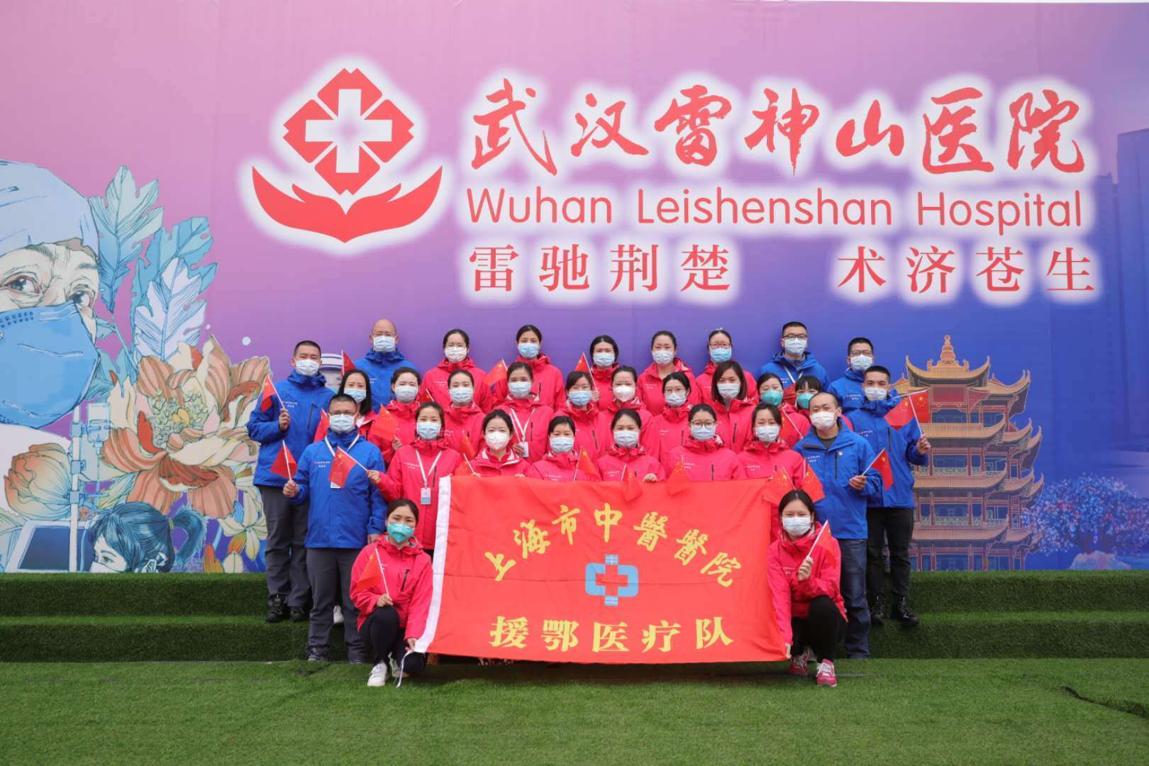 上海市中医医院参加国家中医医疗队的30名队员在雷神山医院合影