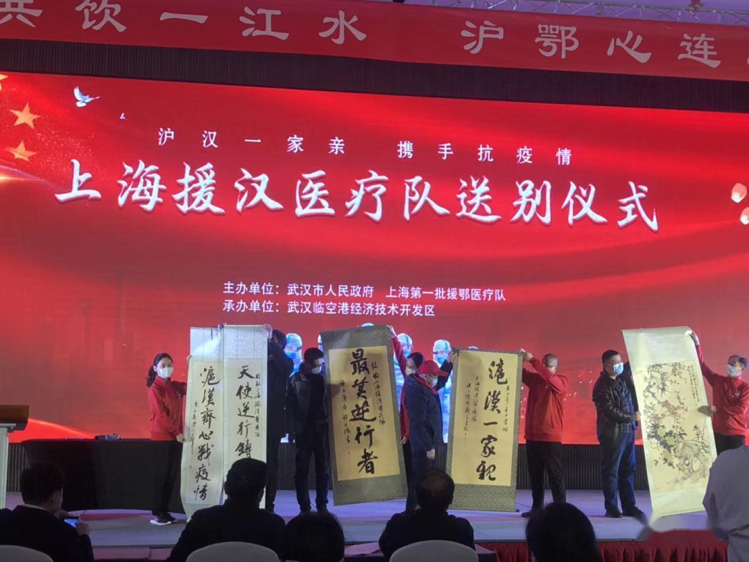 武汉市为上海第一批援鄂医疗队举行送别仪式。新华医院崇明分院徐鸣丽护士摄