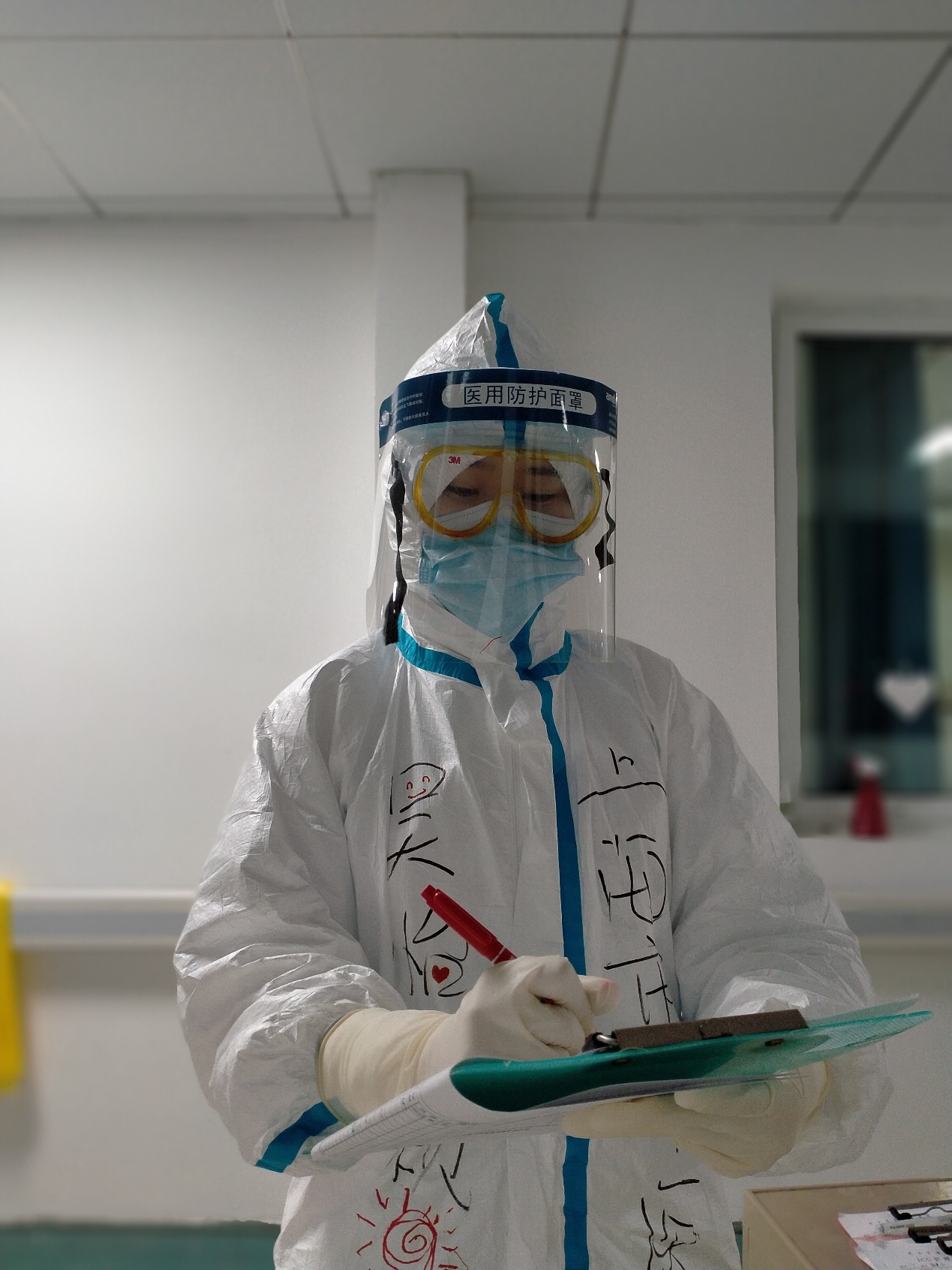 悉心照料、前一天还在聊天交流的病人,病情急转而下去世,让她震惊,悲伤地流泪;端便盆、擦洗身体时,病人的不好意思和一句句“谢谢”,都让她心里温暖;一个戴着呼吸机不能说话的患者在纸上写下“请你们畅游武汉、吃遍武汉”的心愿,带给她欢乐;47岁的患者肖贤友在金银潭医院去世前写下了遗书,一共两行11个字,第一行是“我的遗体捐国家”,第二行写道:“我老婆呢?”吴怡颖说,她看到了一个人的伟大,也看到了他的平凡。