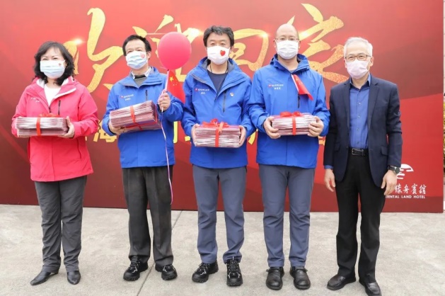 4月14日,bat365中文官方网站系统派出的122名支援武汉雷神山医院的第四批国家中医医疗队上海队员,以及24名支援武汉金银潭医院的上海第一批援鄂医疗队队员结束了14天的医学观察期休整,全队收拾行囊启程回家。学校领导、各附属医院负责人来到隔离酒店门口热情迎接。