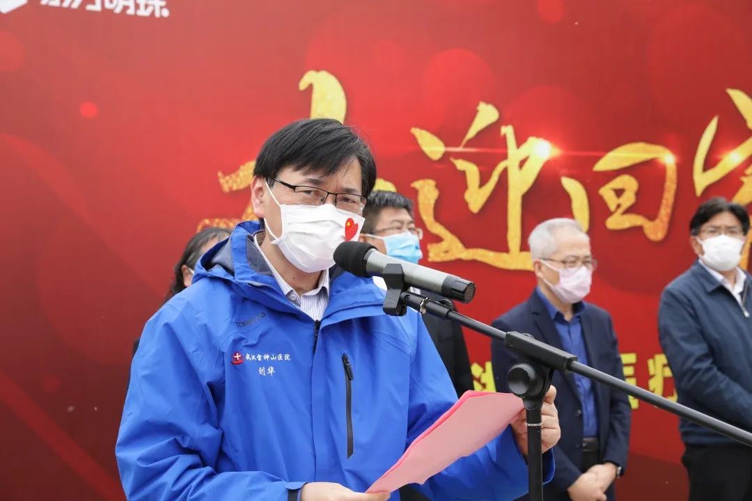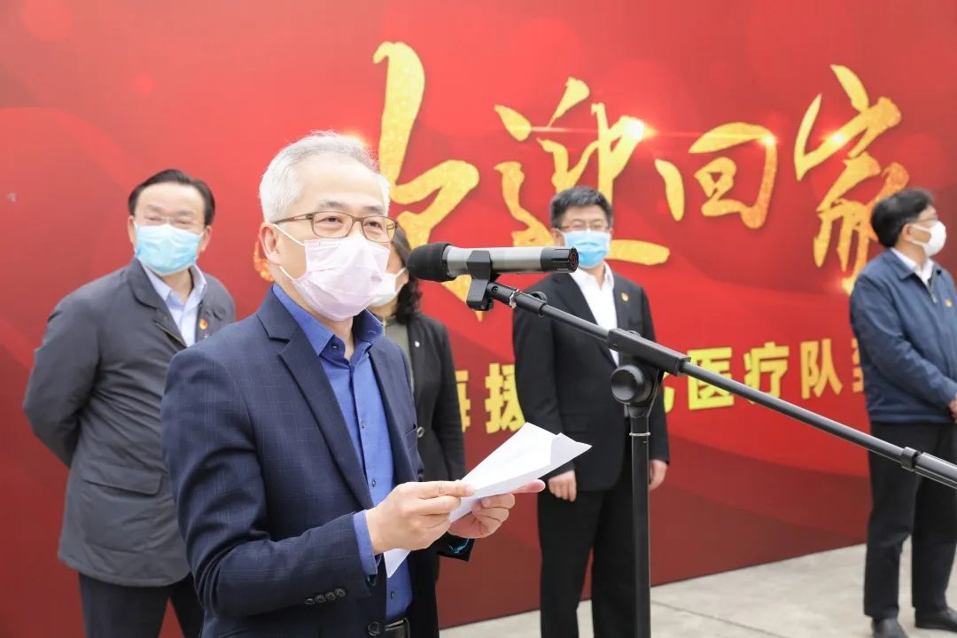 第四批国家中医医疗队(上海)领队、学校医院管理处处长刘华首先对各级领导的关心和支持、对学校的坚强指挥和鼓励,对各家医院的全天候、全方位的奋斗和支持,对全体队员逆行而上努力拼搏表示了衷心的感谢。