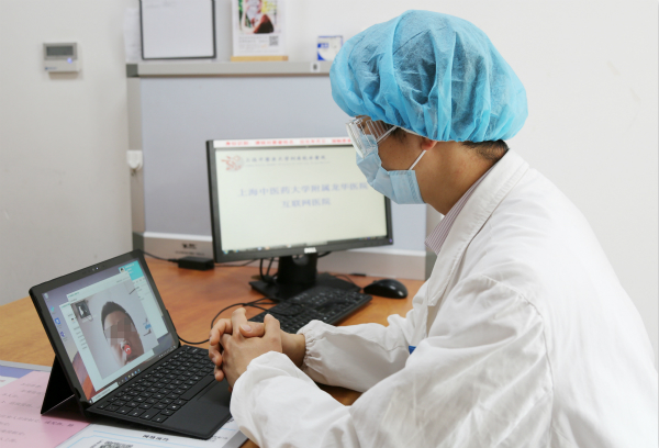 图说:龙华医院王骁医生通过网络为患者复诊 来源/采访对象供图(下同)