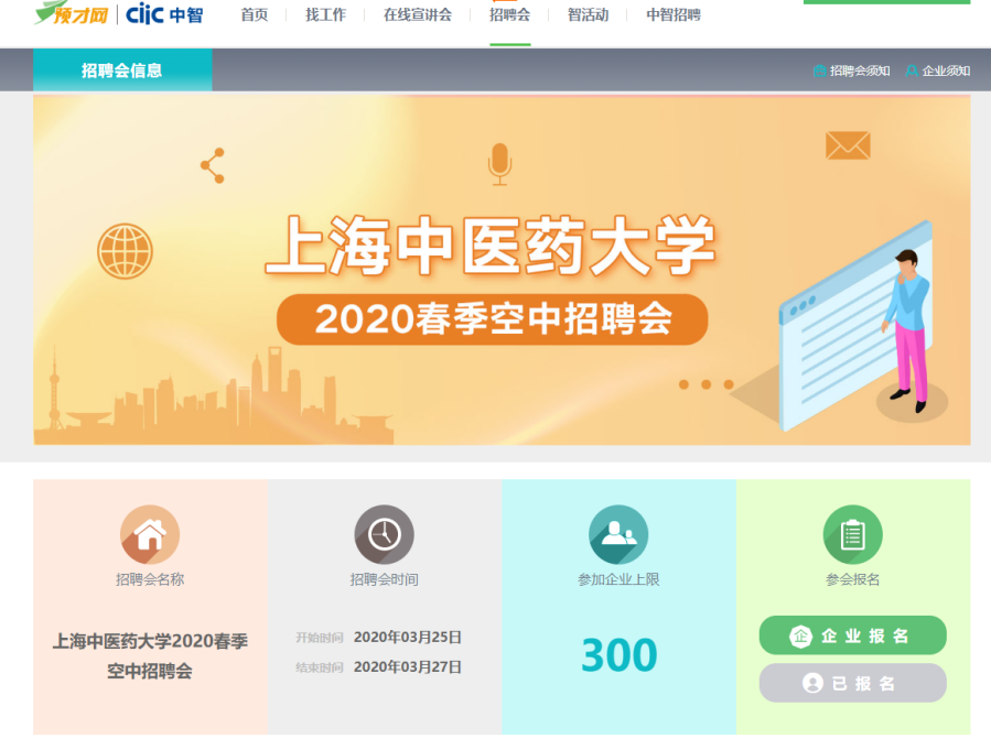 学校在3月25日至27日联合预才网开展空中招聘会,吸引近300家优质企事业单位报名,涉及各级医院、科研单位、医药企业、健康养生和保险企业等多个方面,提供1000余个招聘岗位,需求人数5000多人,覆盖专业全、地域分布广、招聘需求大,皆创历年之最。招聘会共吸引近1000名学生参加,学校学生简历投递份数达2136份。