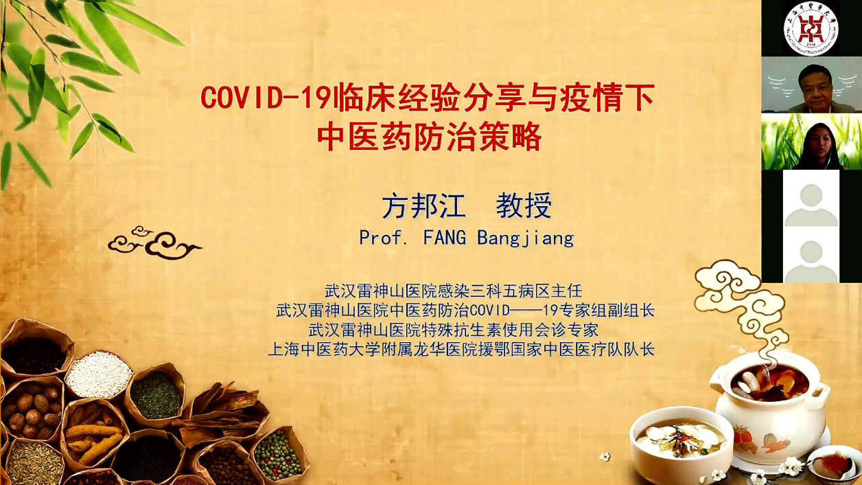 方邦江从新冠病毒及其传播方式、中医对传染病与新冠肺炎的认识、新冠肺炎临床辨治、新冠肺炎用药体会、疫期复工后防护工作建议五个方面作讲解,所讲授的临证用药以及中医预防调护等对防疫抗疫工作具有实用的指导意义。