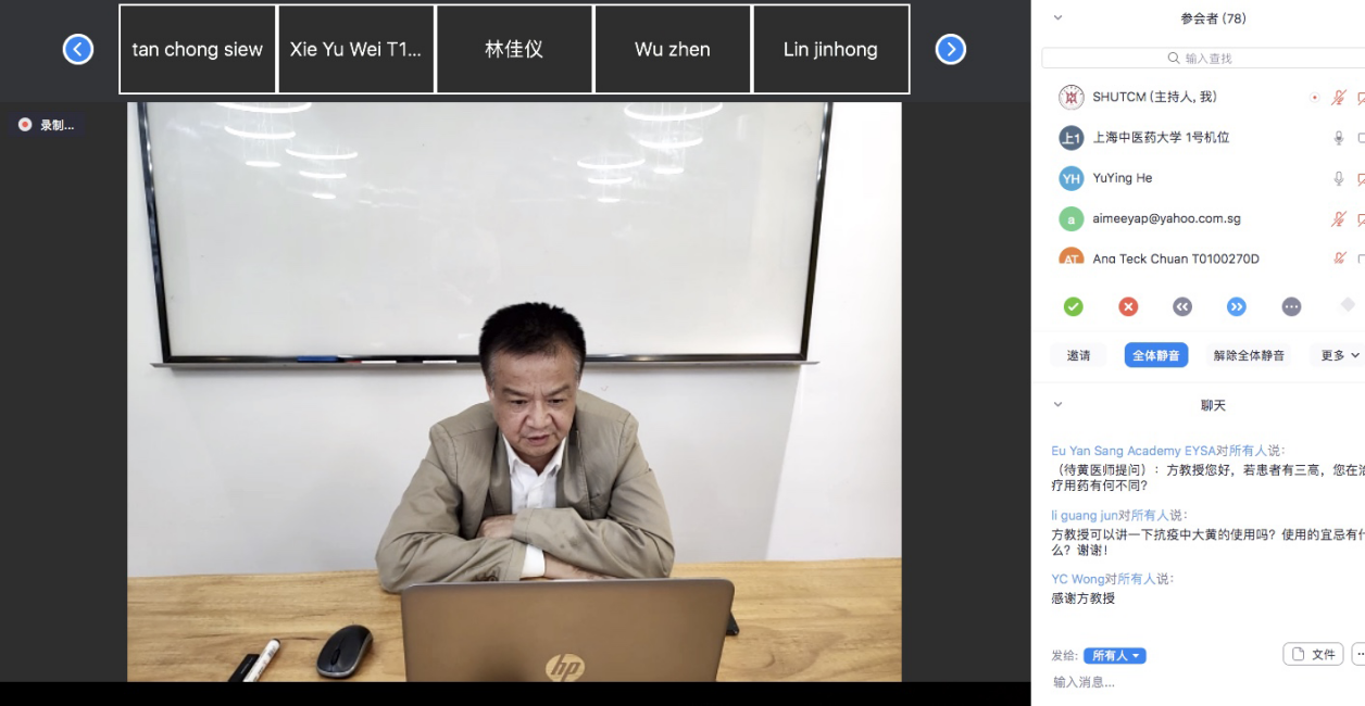 近期,bat365官网国际教育学院应邀与新加坡余仁生学院合作,为新加坡中医师协会开设疫情防治以及疫情期间的慢病护理系列公益讲座。