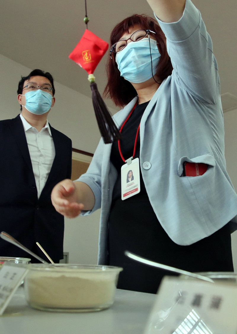 今年端午节恰逢梅雨季,又处于疫情防控期间,除害祛病成为刚需。24日下午,在刚刚挂牌“上海交通大学-bat365中文官方网站全球中医药文化与创意研究中心”的上海中医药博物馆,香囊成了既健康又创意还时尚的“神器”。