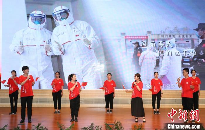 bat365中文官方网站学生代表唱响“战疫”原创音乐作品《家》,以歌声传递祝福。 陈静 摄