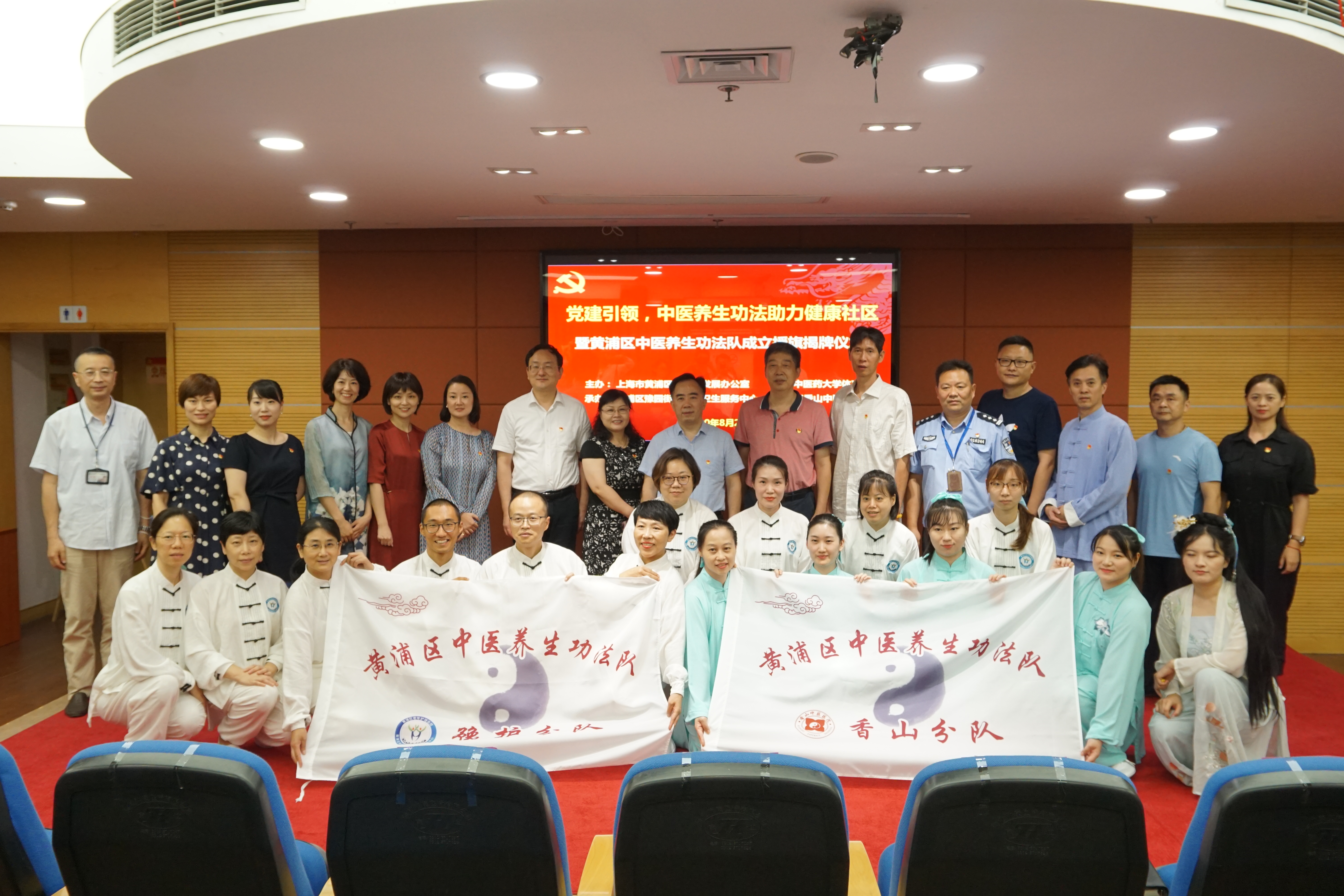 为进一步深化落实“院校互联互动、聚力合作发展”,不断提升基层党组织的创新力。8月25日下午,黄浦区中医养生功法队成立授旗揭牌仪式暨党建联建签约仪式在黄浦区豫园街道社区卫生服务中心会议室举行。仪式由黄浦区中医药发展办公室、bat365官网体育部主办,黄浦区豫园街道社区卫生服务中心和黄浦区香山中医医院共同承办。