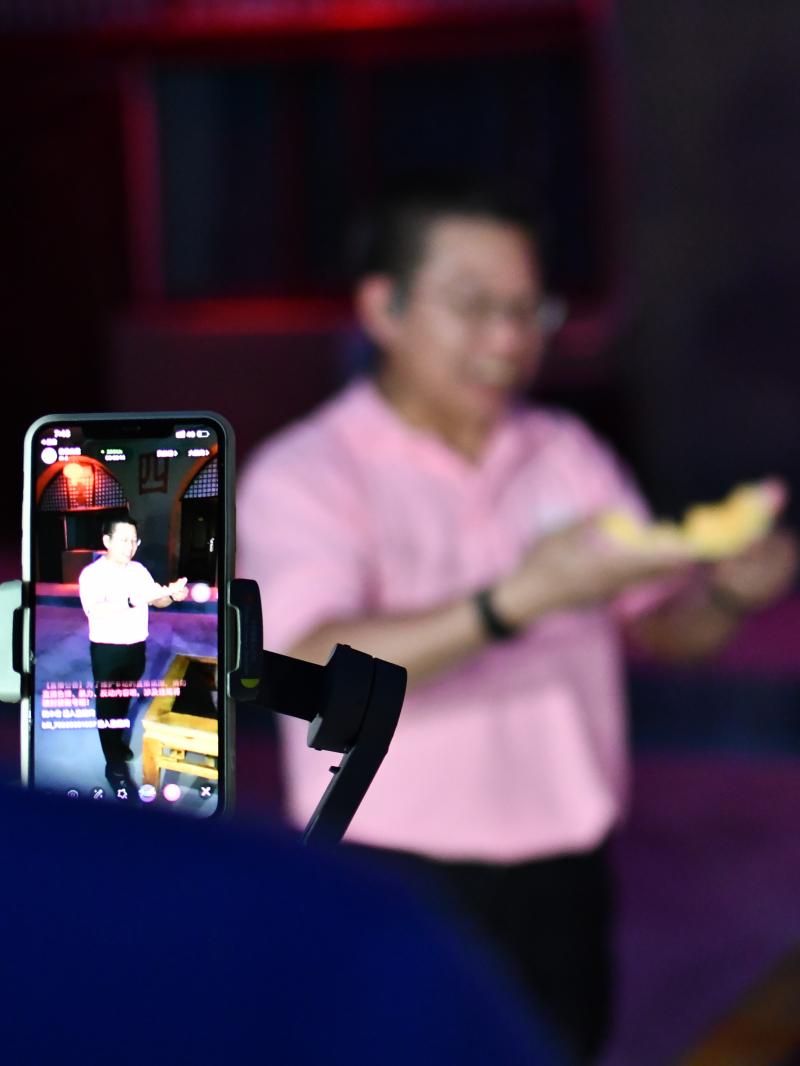 根据医生们的田野调查,这一带乡村的饮食结构并不十分健康,喝酒抽烟的“三高”不少。吃饱更要吃好,于是全队年龄最长的颜崇淮当起网上“吃播”。晚上,在索驼窑洞大院的红灯笼下,他接过自己门下的公卫学院博士生王苏苏用手机直播带货的瓜,推介口中的索驼品牌网纹甜瓜。
