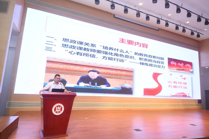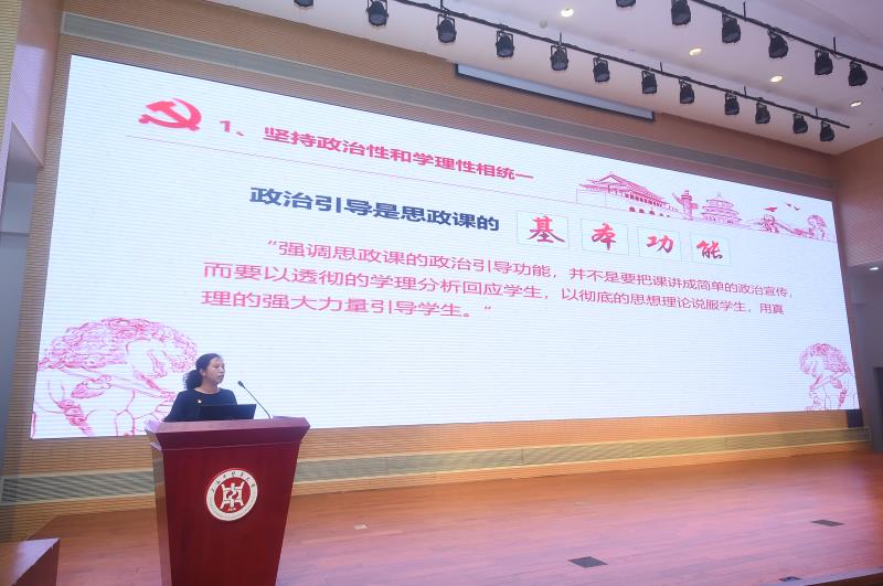 在此次会议上,马克思主义学院陈荣武教授和何兰萍副教授以讲思政课的形式交流学习体会。陈荣武就学习贯彻习近平总书记对思政课教师提出的“政治要强、情怀要深、思维要新、视野要广、自律要严、人格要正”的要求谈了体会,他认为,作为思政课教师要强化角色意识、职责担当自觉,不但要积极探索新时代教育教学方法、提升教书育人本领,更要政治过硬、不断锤炼政治定力,“心有所信、方能行远”。何兰萍以“坚持思想政治理论课建设守正创新”为题,从思政课的学科特点出发,对思政课改革创新要做到“八个统一”的要求进行了阐释;从思政课教学内容、教学形式、教学方法等角度,就如何深入贯彻落实“八个统一”的要求进行了介绍交流。