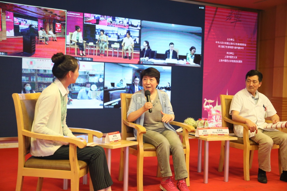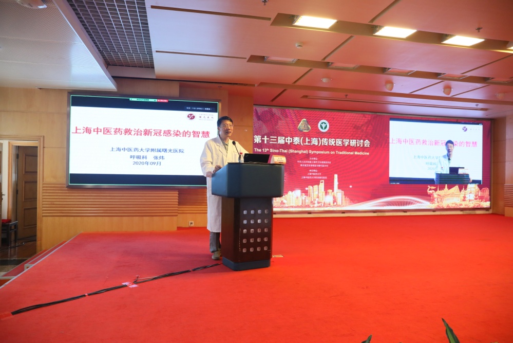 在专家授课环节,普陀医院院长黄德魁主持会议。附属龙华医院方邦江教授、曙光医院张炜教授和泰国泰医研究院Dr. Kulthanit Wanaratna(林鲲宝)主任先后作学术报告,主要介绍传统医学在新冠肺炎疫情防控中发挥的作用。