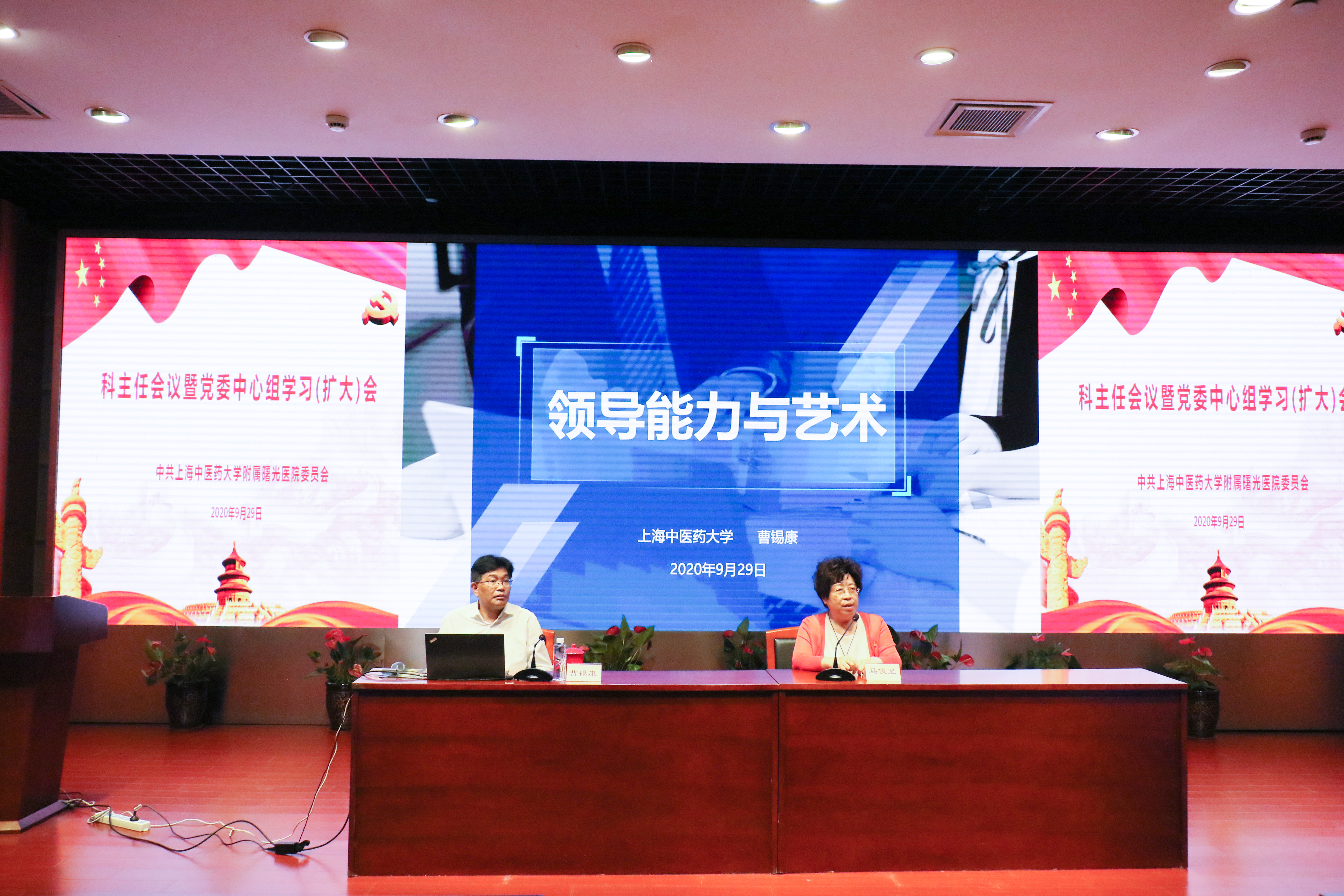 为进一步提高医院管理效能,助力三级医院等级评审,9月29日下午,附属曙光医院举办党委中心组学习会暨中层干部培训会,校党委书记曹锡康受邀作“领导能力与艺术”专题讲课,医院党政领导班子、党委委员、纪委委员、党支部书记、支部委员及各临床、职能部门负责人、各教研室主任、护士长、团支部书记、团委委员等参加学习会。会议由医院党委书记马俊坚主持。