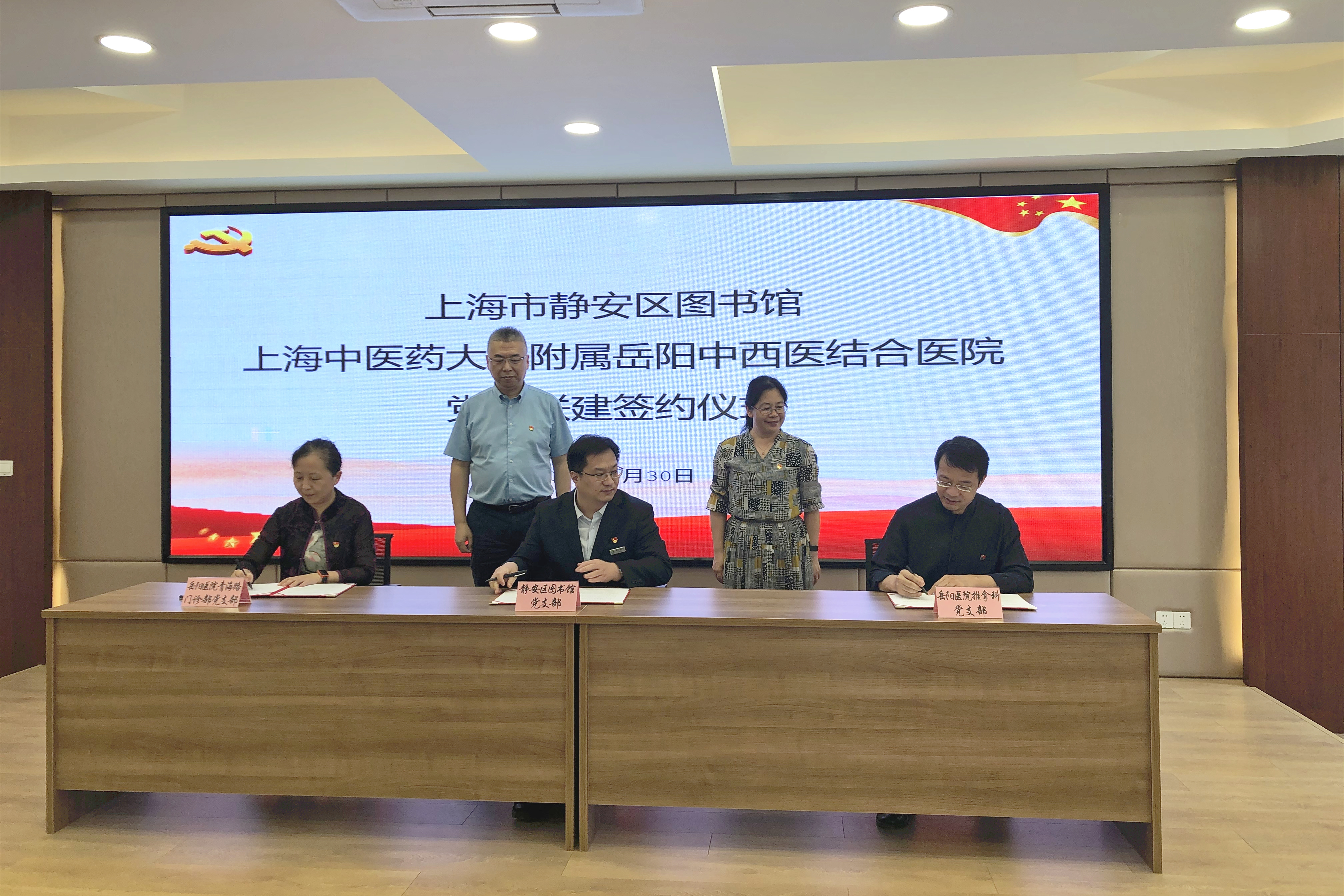 附属岳阳中西医结合医院青海路门诊部党支部联合推拿科党支部与静安区图书馆党建共建签约