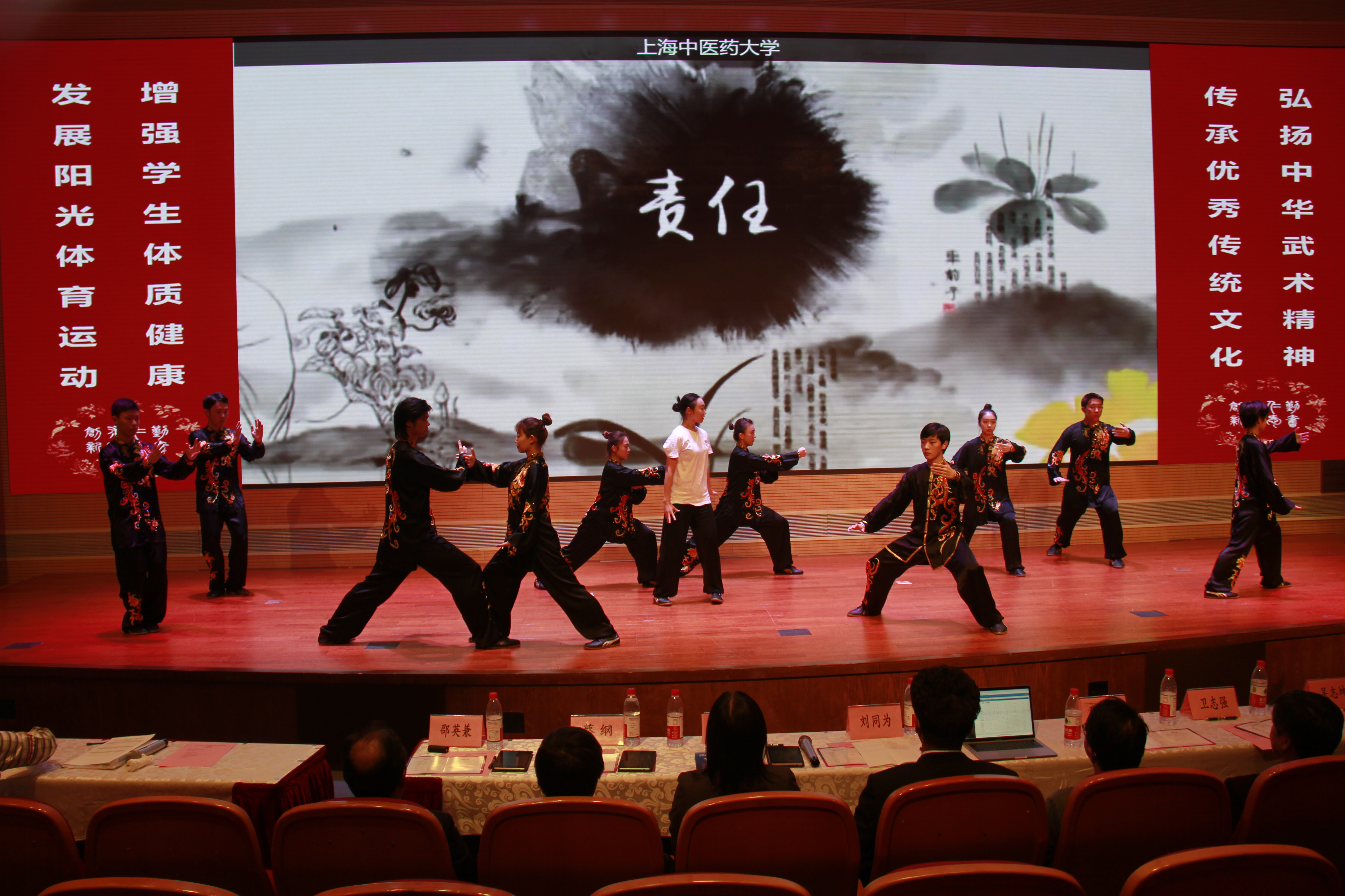 比赛中,“武林后生”们先后献上精彩纷呈的表演,专家评审们根据每个参赛作品的舞台表现进行专业点评。华东理工大学带来的《功夫醒狮》,将韵味深厚的太极融合传统舞狮,拉开了武术秀的序幕;上海海事大学的《群英荟萃》,展现了中华武术的博大精深;东荷小学、东沟中学、东沟小学的《见义勇为》反映了抵制“校园霸凌”的教育题材;上海大学的《新精武门》,讲述了民国年间精武门守护一方平安的故事;上海立信会计金融学院带来《当重阳遇上太极拳》传承传统节日;上海电机学院的《中华武魂》展现一代武术家的不屈不挠精神。复旦大学演绎医务人员“抗疫”感人事迹,医护人员和患者齐练太极拳,最终合力战胜病毒;第二工业大学的《以武会友》讲述了少年们集结一堂为了共同的目标而奋斗的故事;上海体育学院的《少侠》展现了侠客精神;松江尚文武校带来的《尚武少年》和观澜小学的《习武少年》,展示了当代少年高超的武艺;上海应用技术大学的《镖客》讲述了明末清初一对镖师的故事;“闻鸡诵经典,起武强体魄”,bat365中文官方网站的《闻鸡起舞》讲述了中医学子晨起朗诵中医经典,习练武术,为传承中华优秀传统文化而奋斗的故事。