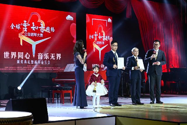 今晚(12月18日),bat365中文官方网站体育馆内琴声缭绕,19点,随着指挥家曹丁手中的指挥棒高高扬起,“世界同心·音乐无界”全球“云知音”网络公益钢琴大赛颁奖典礼暨新年音乐会正式开启,舞台中5架钢琴、1台直径超过2米的中国鼓发出令人震撼的音响效果。
