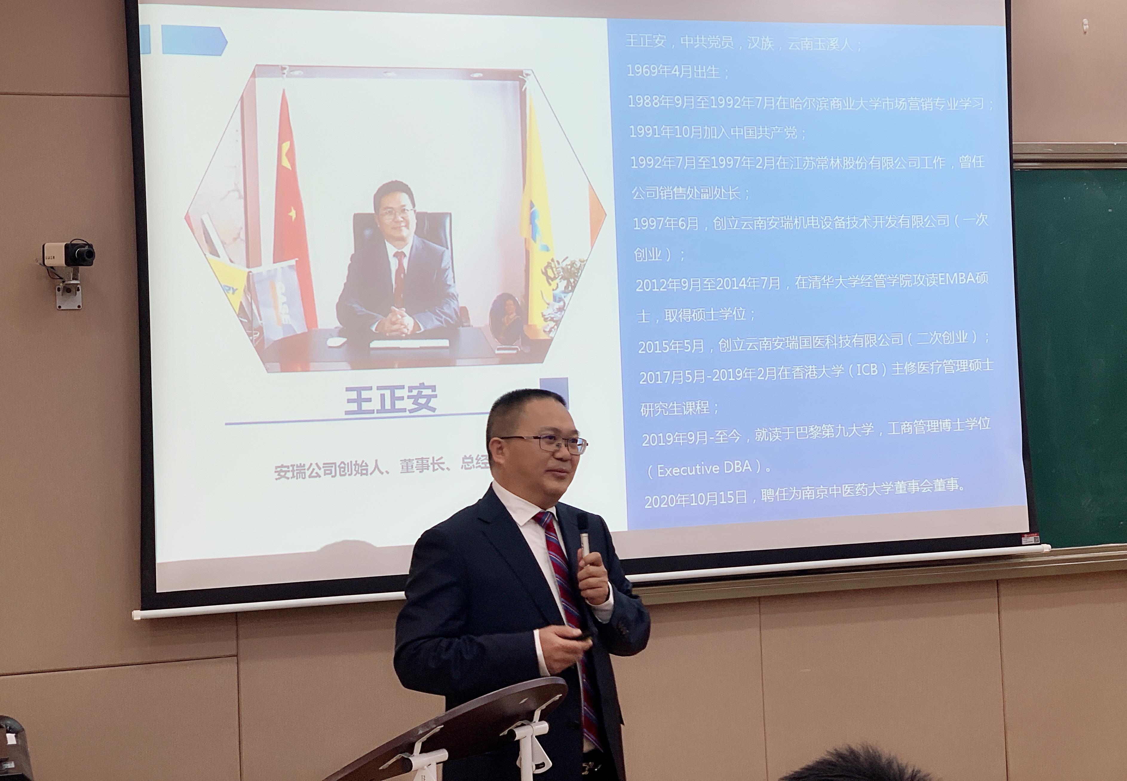 针灸推拿学院房敏代表学院全体师生,向安瑞公司和校基金会、学工部等部门长期以来对学院各项工作的关怀和支持表示感谢,他表示,2020年历经磨难,在党中央的正确领导下,全国人民信念愈坚,共克时艰,走过风云收获成长;2021年蕴含希望,希望大家突破自我,创出辉煌。