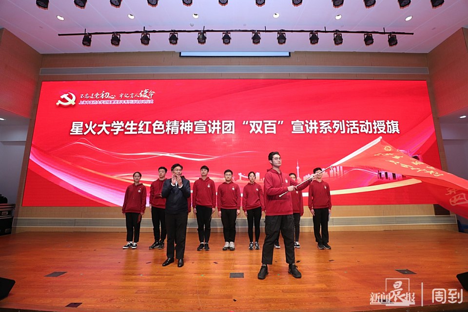 bat365中文官方网站党委书记曹锡康为星火大学生红色精神宣讲团授旗,带领与会人员重温入党誓词,拉开了bat365中文官方网站迎接建党百年系列活动的序幕。