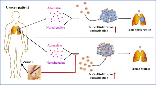 日前,bat365中文官方网站基础医学院中医药免疫研究中心朱诗国课题组与针灸推拿学院赵琛课题组的合作研究成果Grain-sized moxibustion promotes NK cell antitumor immunity by inhibiting adrenergic signaling in non-small cell lung cancer在国际知名期刊Journal of Cellular and Molecular Medicine上在线发表。