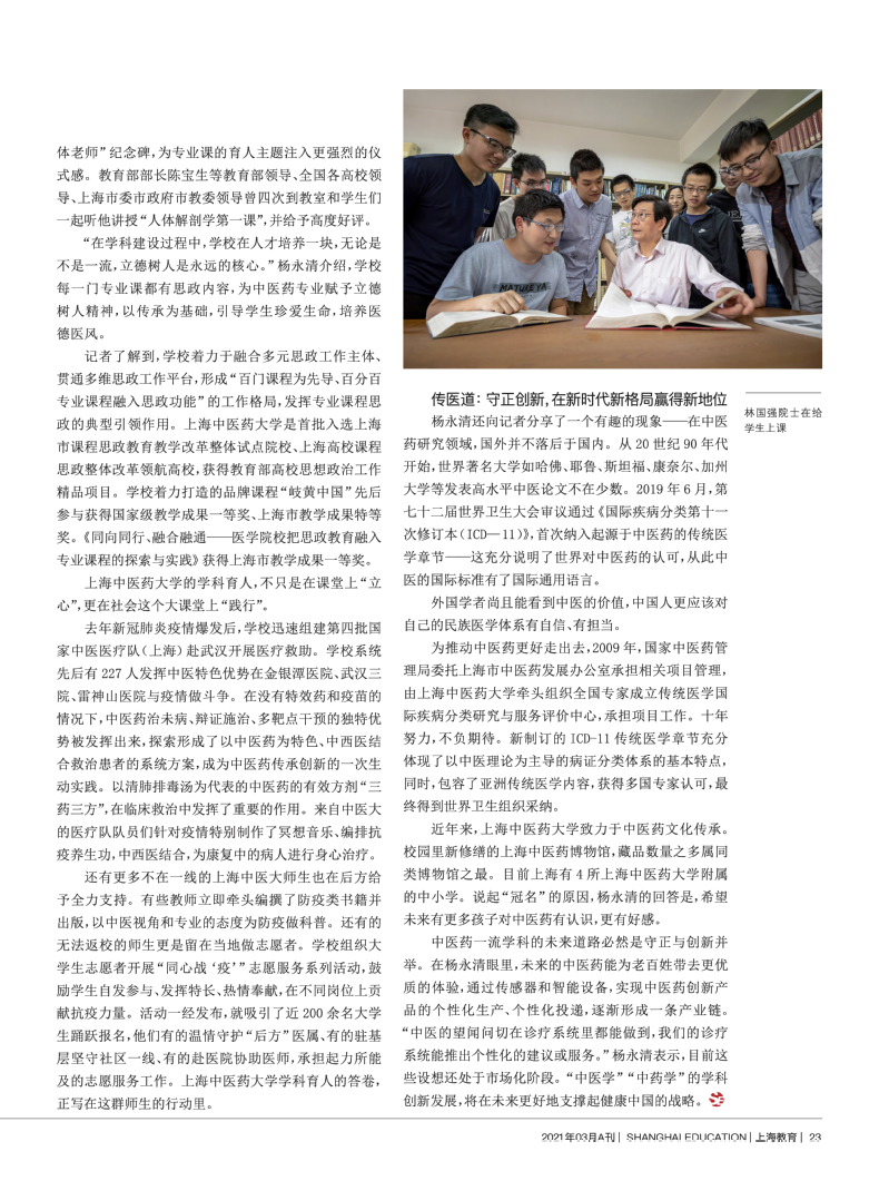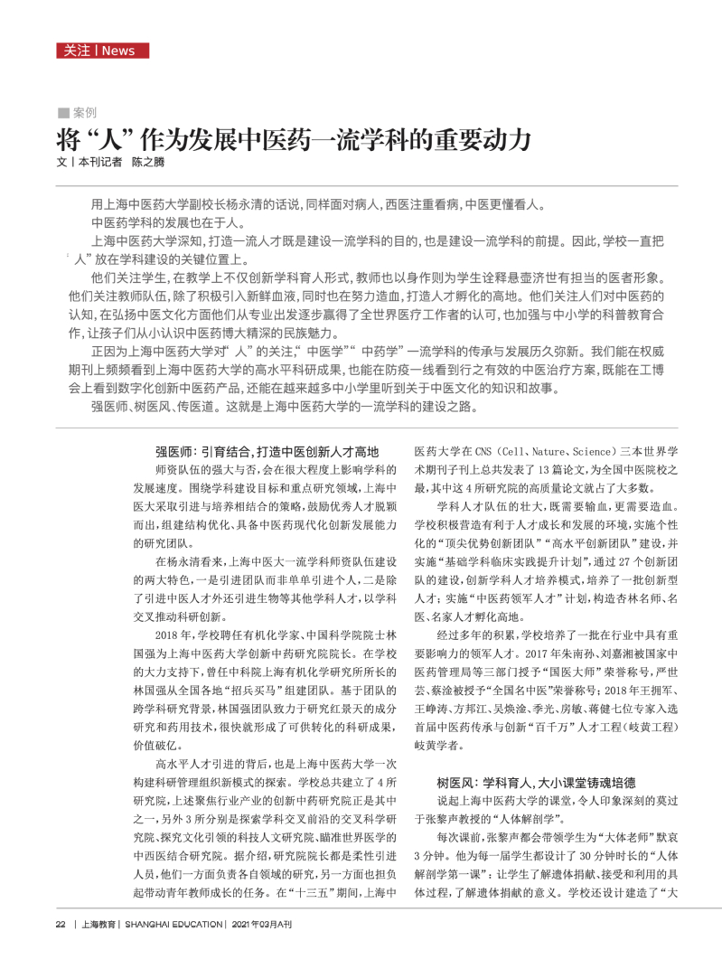 上海教育:将“人”作为发展中医药一流学科的重要动力