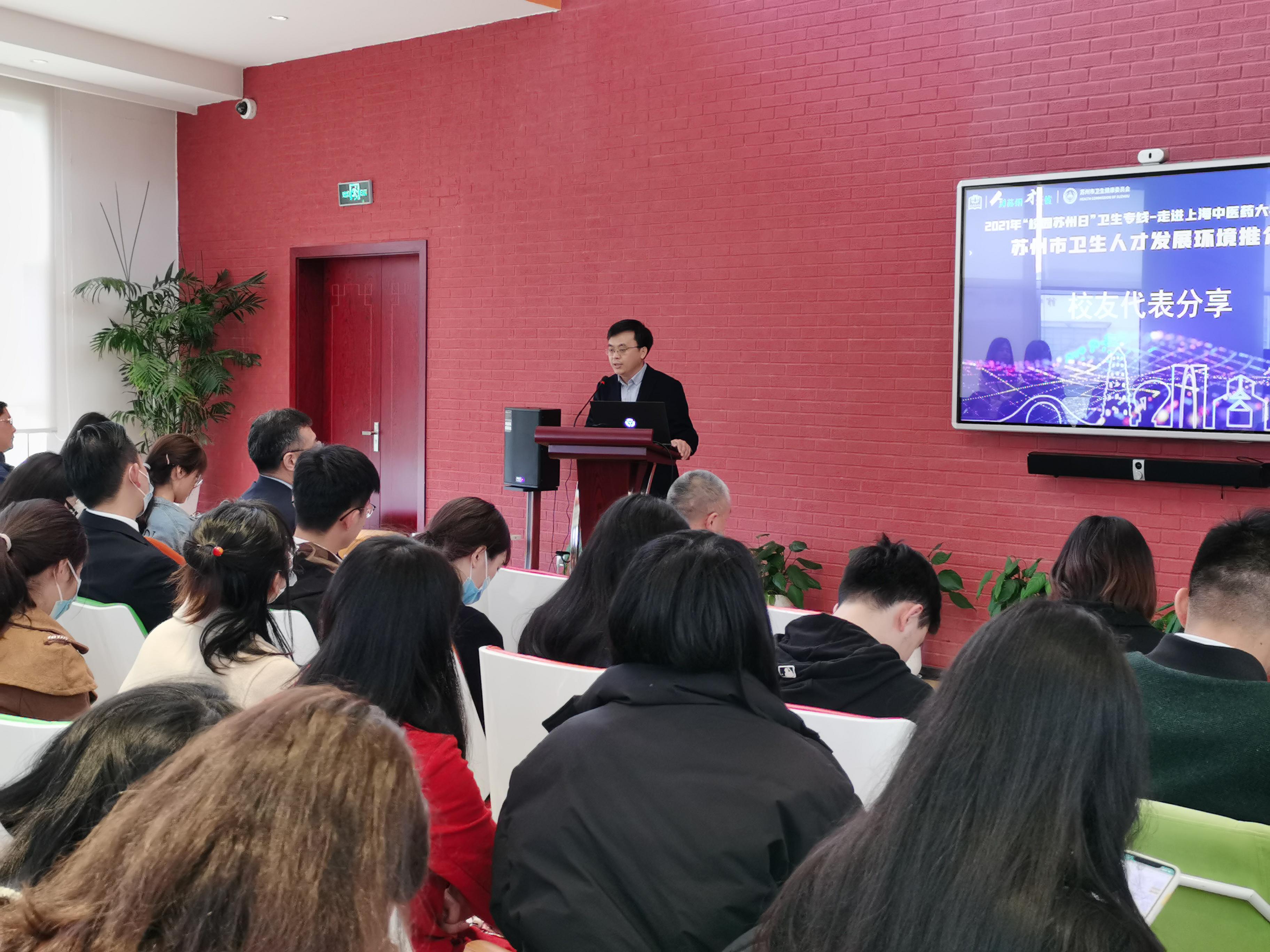 苏州专场上,苏州卫生健康委员会带队苏州市中医医院、张家港市卫生健康委员会等医疗卫生机构与企业携手制定“校园苏州日”专线,来校寻访学校医学人才,推动双城医疗卫生资源交流。