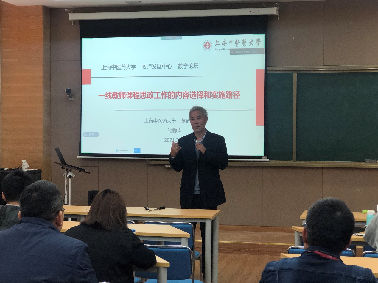 张黎声首先从课程思政的“概念与内涵”讲起,着重强调高校教师要明确“为谁培养人、培养什么样的人、怎样培养人”的关键问题,同时指出,所有课堂应该秉持正确的价值导向,坚持立德树人,在课程教学中把马克思主义立场观点方法的教育与科学精神的培养结合起来,提高学生正确认识问题、分析问题和解决问题的能力。课程思政必须坚持正确的原则要求,只有建立科学有效的课程思政教学体系,要才能真正实现“课程思政”与“思政课程”的同心同力同行,形成立德树人合力。