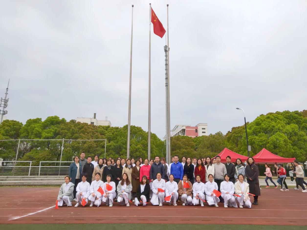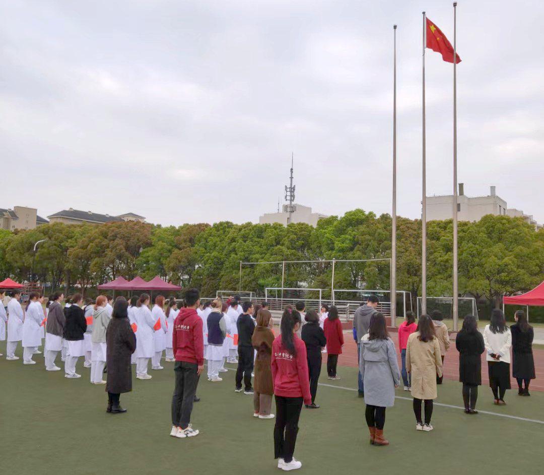 4月15日早晨,bat365官网“早安国旗”国家安全教育日升旗仪式和理想信念教育活动在体育场举行,学生工作党总支、保卫处和护理学院部分师生参加。