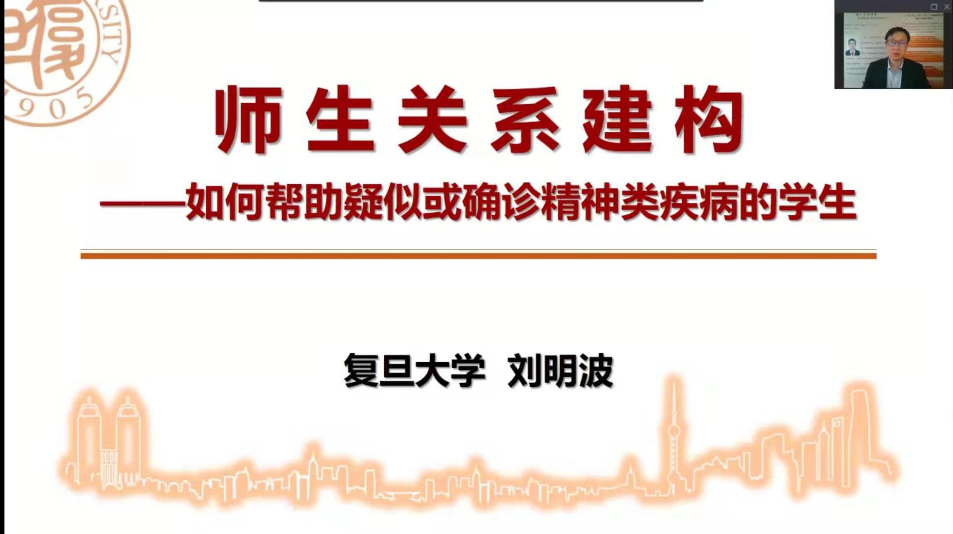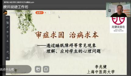 教师心理赋能工作坊共五讲,邀请了bat365官网中医心理专家李兆健教授,上海市精神卫生中心主任医师何燕玲,上海市精神卫生中心临床心理科主任、心身医学特色学科负责人陈珏,上海市精神卫生中心医务部主任、主任医师姚培芬,复旦大学社会发展与公共政策学院党委副书记、副教授刘明波,分别就“身心关系”“疾病识别”“危机发现”“转介流程”“关系建立”五大主题开展培训。