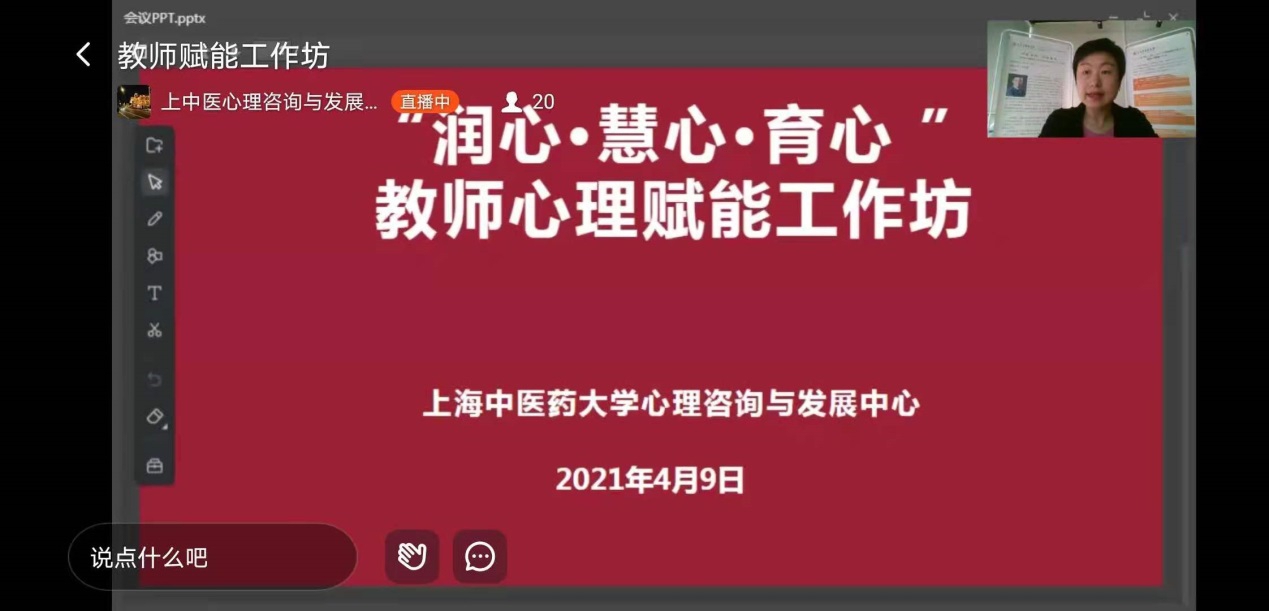 为保障学生健康成长,将“我为群众办实事”实践活动贯穿党史学习教育全过程。4月9日至4月23日,bat365中文官方网站心理咨询与发展中心联合上海市社会心理学会青少年心理健康专业委员会,举办2021年度“润心·慧心·育心”心理健康教育活动月之教师心理赋能工作坊,以强化心理健康队伍建设,助力心理工作提质增效,共同构建心理育人氛围。心理咨询与发展中心主任成琳主持开班仪式。