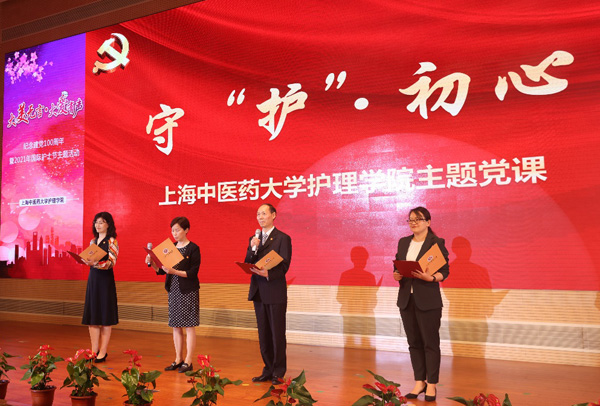 党课中,护理学院副院长廖晓琴现场访谈了有62年党龄的全国优秀中医护理工作者彭佳珍、全国卫生系统先进工作者陆静波和抗疫中火线入党的全国向上向善好青年甄暐。老中青三代优秀护理人代表讲述了不同时代的护理党员如何守初心、担使命,并对新时代的青年护理学生提出了殷切的期望,希望他们传递时代接力棒,传承红色护理新篇章。