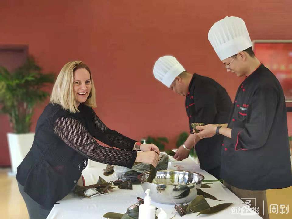 来自法国的米娜对中医药文化充满了浓厚的兴趣。现场学习包粽子。亲身感受了中医文化的神奇魅力后,她赞不绝口。