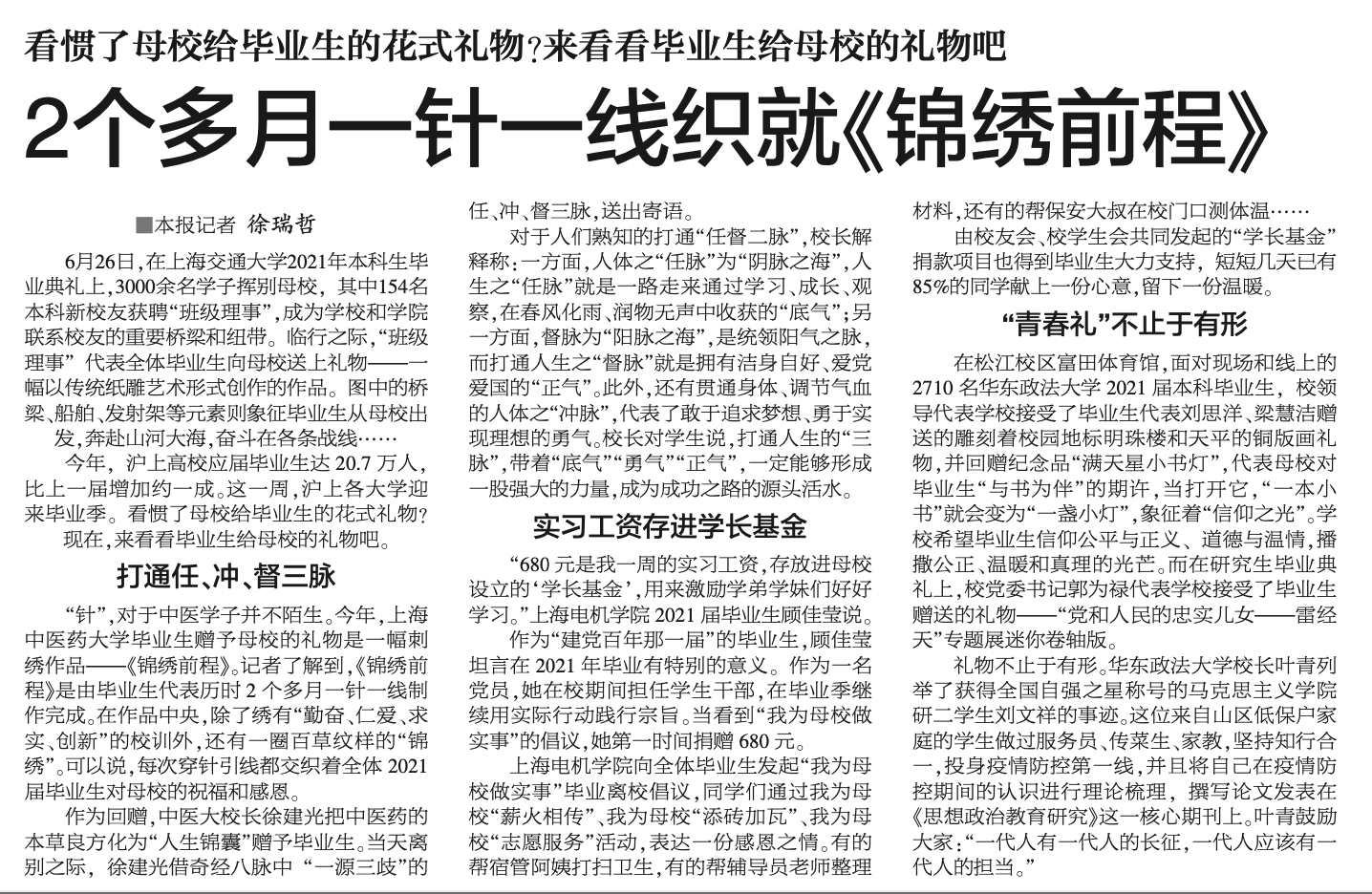解放日报:2个多月一针一线织就《锦绣前程》