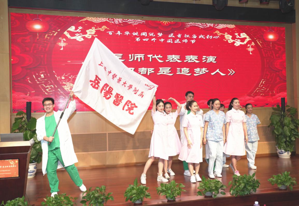 医务人员代表表演舞蹈《我们都是追梦人》。