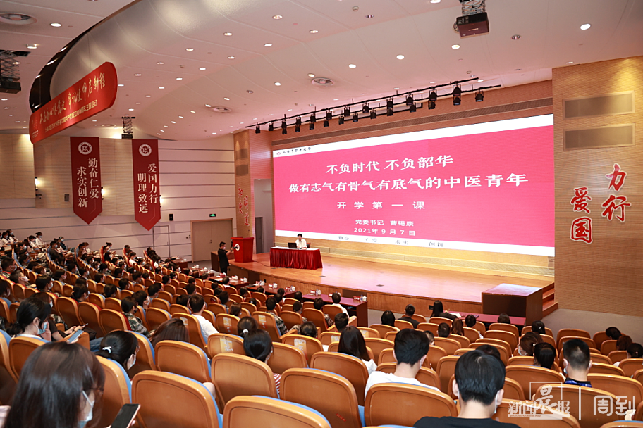 党委书记曹锡康以“不负时代 不负韶华,做有志气有骨气有底气的中医青年”为主题,为新生上了 “大学第一课”。