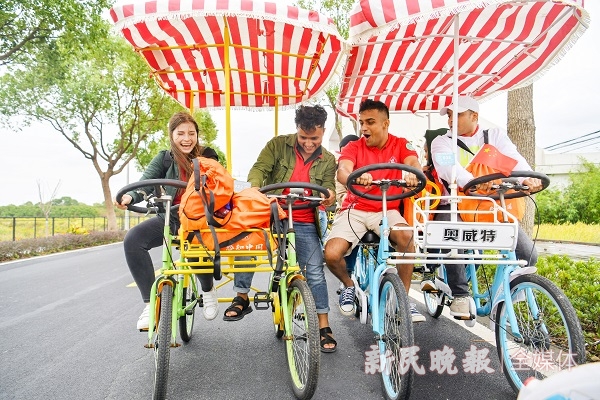 海沈村是两届场地自行车冠军钟天使的家乡,主办方带领沪上国际学生,以骑行打卡的方式领略乡村美景,感受上海浦东的新农村发展。