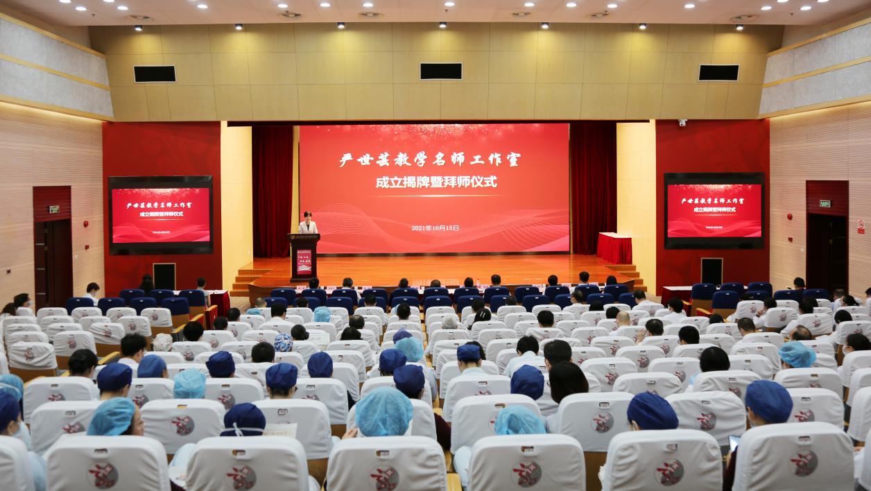 10月15日下午,附属龙华医院举行“严世芸教学名师工作室”成立揭牌暨拜师仪式。bat365官网终身教授严世芸,副校长舒静,龙华医院院长陈跃来,医院党委副书记高炬,副书记、副院长刘萍,副院长李屹、郑培永、梅国江,总会计师周礼华以及龙华医院科主任、护士长、党支部书记、教研室主任等参加。揭牌暨拜师仪式由刘萍主持。